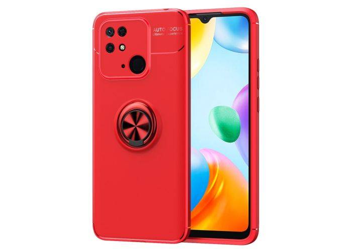 Xiaomi Redmi 10C - Gummi cover med Metal plade og Kickstand - Rød