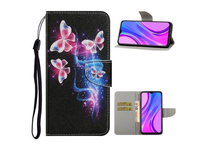 Xiaomi Redmi 9C - Læder cover / pung - Printet Design - Pink sommerfugl