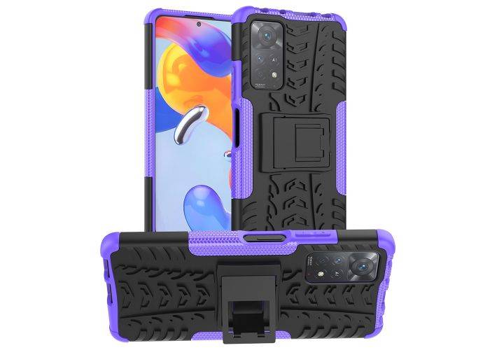 Xiaomi Redmi Note 11 Pro 4G / Redmi Note 11 Pro 5G - GRID Hybrid cover med kickstand - Lilla