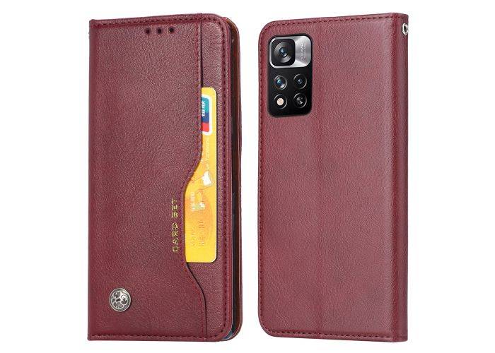 Xiaomi Redmi Note 11T 5G/Redmi Note 11S 5G - Læder cover / pung med udvendig kortholder - Vinrød